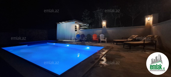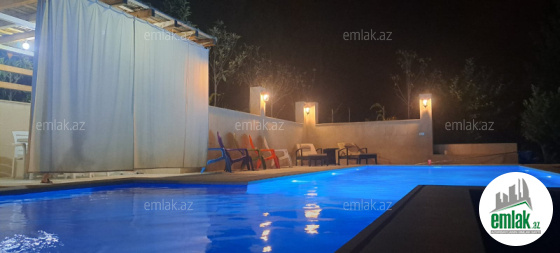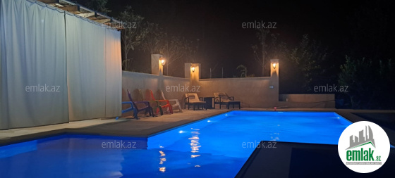Zəng edərkən qalacağınız tarixləri və qonaq sayını mütləq qeyd edin !! Evlərə giriş saatı 14:00, çıxış saatı isə 12:00-dur. 2 mərtəbə villa. Qonaq otağı, 3 yataq otağı, 2 sanuzel. Hər otağn kondisioneri var. 8-10 nəfər qala bilər. Arxası dağ, üzü şəhərə panoramalıdr. Wifi, tv, manqal, samovar, filterli hovuzu var. Günlük qiyməti 300 AZN. Vasitəçilk üçün Xidmət haqqı 30 AZN.