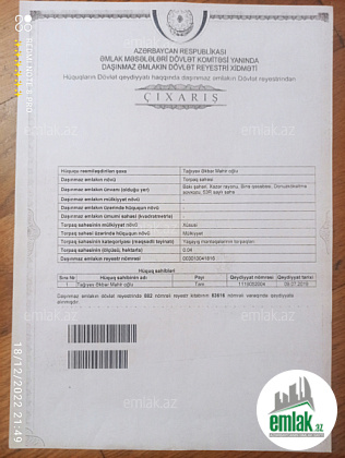 Əmlakın növüTorpaq