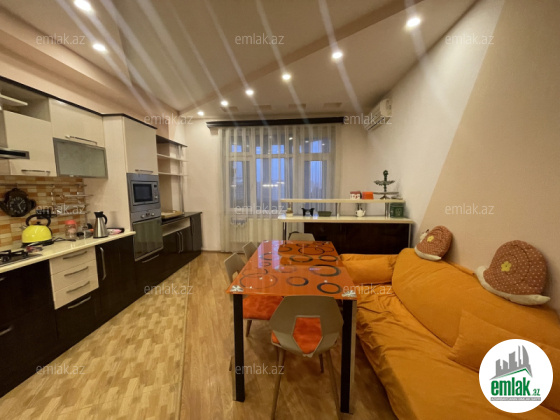 Parlaq böyük mətbəx, iki böyük balkon. Biri şüşəli, digəri avtomatik paltar qurutma maşını ilə olan balkondur.