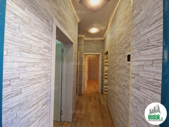 Ev kürslü, divarları 2daş,3 otaqlıdı, kalidoru 16 kvadrat metirdi, onuda 3 otaqdan əlavə kim istəsə otaq kimi istifadə edə bilər.Bütün otaqların qapıları kalidora açılır. İsitmə kombi sistemidi, mətbəx və hamamda istipo...