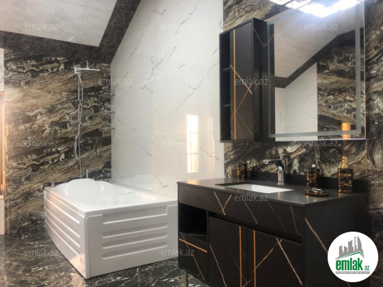 Bakı Bağları şirkəti sizə ekoloji təmiz Mərdəkan qəsəbəsində əsas yoldan 150 metr məsafədə 11 Sotda 2 mərtəbə 340 kv.m 5 otaqlı super bağ evini təklif edir. Ümumi sahəsi 340kv olan evin 1-ci mərtəbəsində geniş zal, mətbəx , texniki otaq və hamam otağı yerləşdirilib. Cam-balkon yığılmış terras hissəsi birbaşa hovuza açılır və isti döşəmə sistemi ilə təchiz olunub. 2-ci mərtəbədə geniş holl və 4 yataq otağı bahalı parket örtüklə üzlənmişdir. 2-ci mərtəbənin 17 kv-lıq ümumi sanuzelində jakkuzi quraşdırılıb və isti döşəmə sistemi qurulub. Bundan əlavə böyük yataq otağında da 10 kv-lıq sanuzel yerləşdirilib Ev yüksək zövq və keyfiyyətlə təmir olunub. Otaqlarda asılmış kombi radiatorları, mebelli mətbəxi, isti döşəməsi, tam hazır sanuzelləri var. Su, qaz, işıq daimidir. İstilik sistemi kombidir. Həyətində geniş filterli hovuz, manqalxanası, yay və qış mətbəxi, cambalkon besedkası, xüsusi qapısı olan mühafizə evi, qaraj, pultla idarə olunan darvazası, su anbarı, dekorativ ağacları və gülləri, sanitar qovşaq, sensorlu gecə işıqları var. Yolu asfaltdır və 4 mövsüm yaşamaq üçün əlverişlidir. Kupçası (Çıxarışı) var. Start qiyməti 580 000 AZN. Qeyd : Bakı ətrafı qəsəbələrdə, xüsüsən də Mərdəkan, Şüvəlan, Bilgəh, Nardaran və s. ərazilərdə satışda olan digər bağ evləri və villalarımız var. Buyurun bizə müraciət edin.