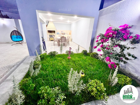 Xəzər ray.Mərdəkan qəs. Makaronuda 6 sot torpaq sahəsində yeni inşa olunmuş bağ evi.Ümumi yaşayış sahəsi 210 kv.m. olan bağ evində 1 qonaq otağı,1 mətbəxt,4yataq otağı,3 hamam otağı və geniş hol mövcutdur.Həyətdə hovuz 8*4,besetka,6*4 manqal,s\q,dekorativ ağaclar var.Tikinti zamanı yüksək keyfiyyətli materiallardan istifadə olunub.Yolu qapıya qədər asfaltdır.Su,qaz,işlıq daimidir.SƏNƏD CİXARİŞ