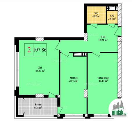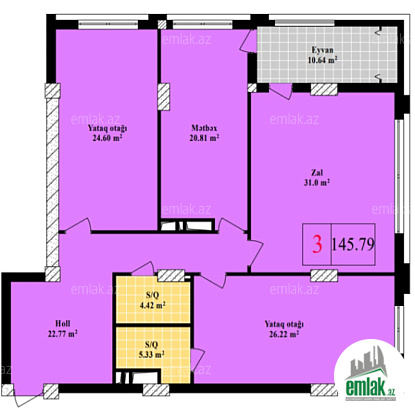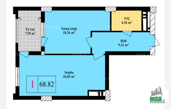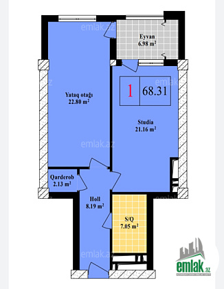 1 otaqlı sahəsi 68,31 kv.m. olan mənzil üçün