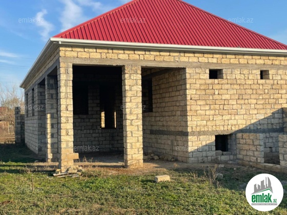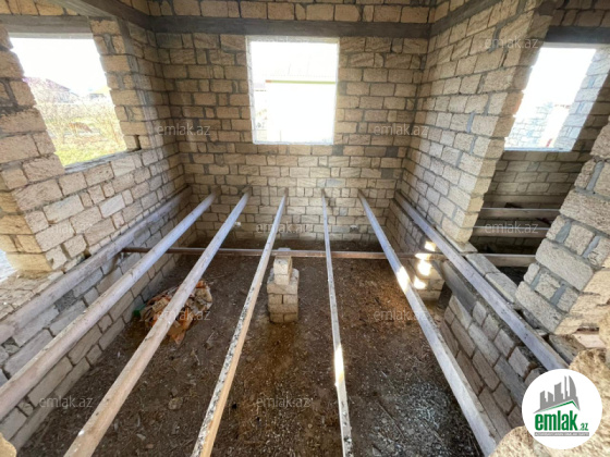 yoldan 100 metr arali,6 sot torpaqda tikilmiş,6 daş kürsülü,120 kv.m.4 otaqlı,əla təmirli ev.Ev əşyalarla bir yerdə satılir(soyuducu,paltaryuyan maşın,...