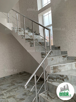 Ev çox hündürdür, həyəti genişdir,3 sotun icerisinde tikilib bağ sahəsi.darvaza elektrondur.. Evin 1-ci mərtəbəsində zal, mətbəx, uşaq otağı, sanitar qovşaq var. 2-ci mərtəbədə isə 3 yataq otağı,1 sanitar qovshaq olmaqla ümumilikdə 5 otaq var. Təmir və şərait əladır. Balkonu çox böyükdür.