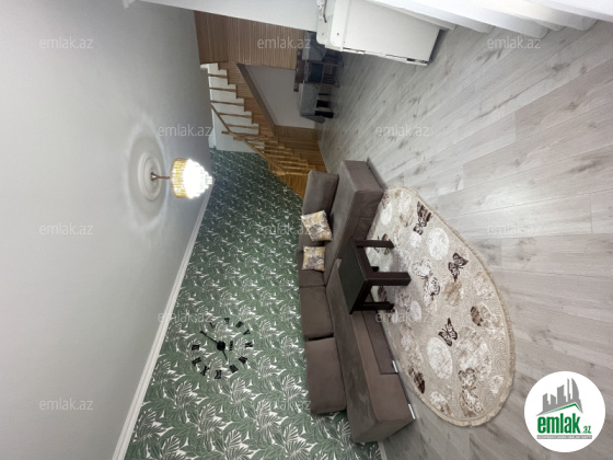 Ev: 1 Gonag otagı, 1 Mətbəx, 2 Yataq otagi və 3 sanitar govşagdan ibarətdir.