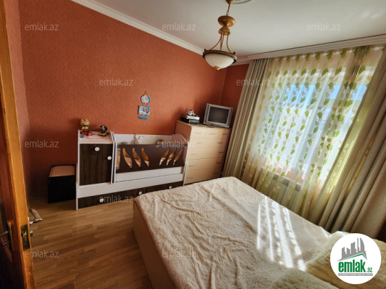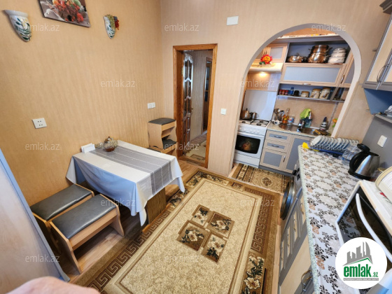 Salam. Sumqayıtda 48-ci məhəllədə, "Daşkənd" layihəli, 5 mərtəbəli binanın 4-cü mərtəbəsində, 3 otaqlı, təmirli, ipotekaya yararlı ev satılır. Mənzil orta blokdadır, künc mənzil deyil. Su, qaz, işıq daimidir. Fiber optik internet xətti çəkilib. TV krosnu və Katv ilə təchiz olunub. Hər üç otaqda TV kabel çəkilib. Evin istiliyi kombi ilə isitilir. İsti su üçün petiminutka quraşdırılıb. Qonaq otağının balkon arası götürülüb. Qonaq otrağı ümumi 25 kv-dır. iki böyük 1.10m lik dərinliyində şkaf yığılıb. Ev yelçəkəndir. Mətbəx mebeli, dəhliz mebeli və kondisioner evdə qalacaq. Evin yanından bütün avtobuslar keçir. Evin yaxınlığında bağça, məktəb elektron və ərzaq mağazaları var. (Elmarın kruqu).Böyük yataq otağının balkona çıxışı var. Balkon açıqdır. 4-cü mərtəbəyə uyğun paltar asmaq üçün boru rolik basdırılıb. Hal-hazırda evdə yaşayış yoxdur. Həyət evi ilə barter də mümkündür.