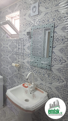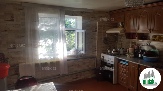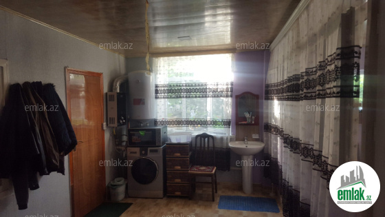 Ev 2 mertebedi. Heyetinde 4 tonluq su anbari var. 48 km² qaraji var, meyve agaclari var. Qazı, suyu, işığı daimidi. Eve baxmaq ucun axsam saat 6 dan sora gele bilersiz.233 nomreli mektebin yani