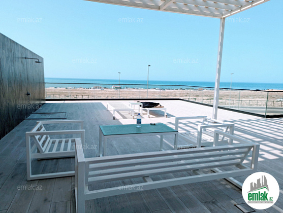 A villa built in a modern style, in front Sea Breeze beach and 200 meters from the sea, is available for rent. At home, every comfort has been considered for luxurious living all season long. Large living room, relaxation area, all modern equipment in the kitchen, professional coffee machine, 2 bedrooms (with sea view), spacious and bright study room, terrace with open sea view on the 3rd floor, jacuzzi and swimming pool on the terrace, summer kitchen and barbecue area. In the yard, for the first time in Azerbaijan, there is a Biodesign Italian swimming pool built with natural sea sand (chlorine and chemicals are not used). The house is equipped with smart home systems and all equipment can be controlled remotely by mobile phone. The house has security, gardener, yard and pool service staff. Please contact via Whats app