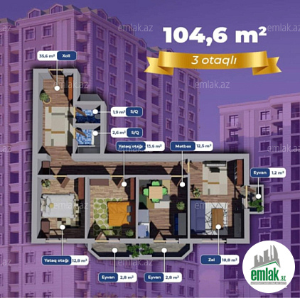 Bakı şəhəri Suraxanı rayonu Yeni Günəşli qəsəbəsi Şəms Rezidencenin yüksək zövqlə inşa etdiyi yeni tikili binada ümumi sahəsi 104.6KV metr olan qanuni 3 otaqlı mənzil təcili satılır.Qaz,su,işıq daimidir.Mənzi təmirsizdir.Binada tam yaşayış var.Alıb rahatlıqla təmir işlərinə başlamaq olar.Sənəd Müqavilədir.QİYMƏT SON QİYMƏTDİR.