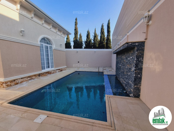 Xezer rayonu Merdekan qesebesinde "Ibo" market yaxinliginda villalarin oldugu elit bir mehellede 5 sot torpaq sahesinde insa edilmis 1 mertebeli 4 otaqli 170 kv,m bag evi satilir. 1 qonaq otagi,3 yataq otagi,1 metbex,2 s/q movcuddur. Heyetinde filterli hovuz,manqalxana,besedka,terras,qazanxana,dekorativ agaclar,isiqlandirma sistemi,distansiyon darvazasi ve s/q var. Su,qaz,isiq daimdir.