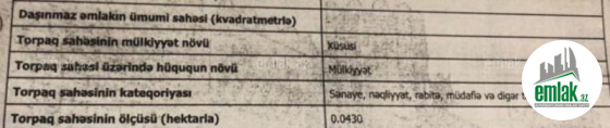 - Əmlakın növüTorpaq