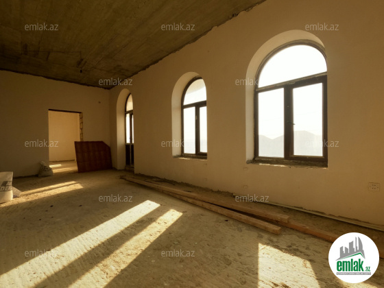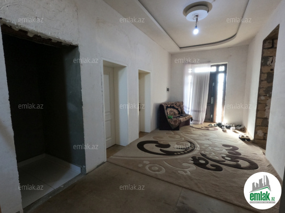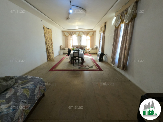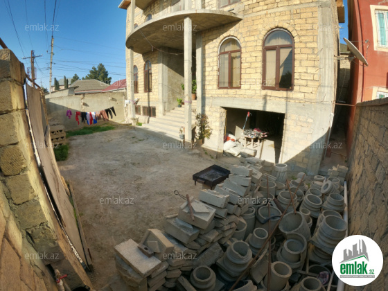 Şexsi tikilmis heyet evidir . Alt ust monalit betondur...7 otagdan ibaretdir . Orta temirli 6 sotun icinde.Otaglar genisdir. Evin icinde heyetin de hamam sanuzel var. Heyetde 10 t su baseyini var. Qaz su isig internet ...
