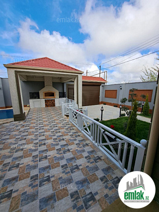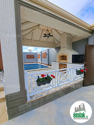 Həyətində filterli hovuz, besedka, manqalxana, kombi otağı, sanitar qovşağı, sensorlu gecə işıqları, dekorativ ağacları, pultla təchiz olunmuş darvazası var.