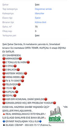 Satılır 3 otaqlı 75 m2 köhnə tikili Şəki
