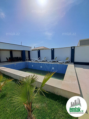 Xezer rayonu Merdekan qesebesi \'\' Veten \'\' restoranina yaxin 3.5 sot torpaq sahesinde 1 mertebeli 150 kvm bag evi satılir. holl ,1 zal , metbext , 3 yataq otagi,2 sanuzeli .qarderob movcuddur.Heyetinde hovuz,bisetka ...