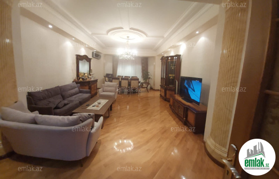 Nizami Rayonu 8 kilometr Elsen Suleymanov kucesinde DIN 14 mertebeli binasinda 9 cu mertebede sahesi 190 kv olan 2 menzilin birlewmesinden ibaret 4 otaqli ela temirli menzil tecili olaraq satilir Menzilin istilik sistemi kombi ile tertib edilib doseme ela nov parketdi Binani cox genis heyeti ve dayanacaqi movcutdur