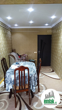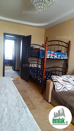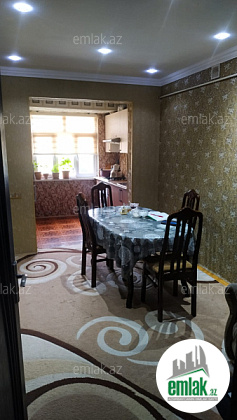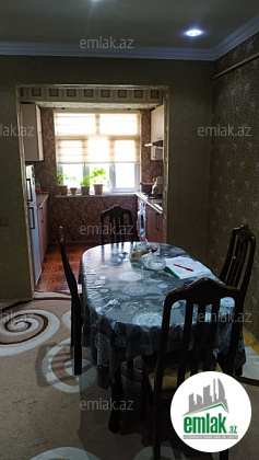 3-dən 4-ə düzəlmə, 5/4, orta blok, daş bina. Ev 0-dan təmir olunub, kabelləri, internet-teıefon-tv hər otağa ayrı-ayrı, divarın içində. Yol kənarı, Olimpiya kompleksinin yanı, 3 dənə məktəb yanında, iki ən ucuz market və bolmartın , həmçinin He-Man fitness zalının, daş bazarının və poçtun yanı. Bakıya gedən marşrut və taksi yolunun üstü. Mənzil dövlət istilik sistemi, fiber optik internet və kabel TV ilə təmin olunub. Həyəti təmiz, bağ-bağçalı və kifayət qədər parkovka yeri var. Əşyalı satılır.