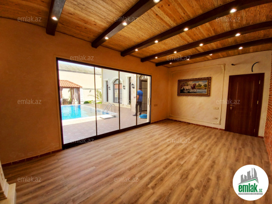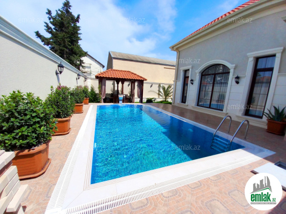 Filterni daşma Hovuzu , şəlaləsi , 3 sanitar qovşağı ( 2-si evdə , 1-i həyətdə söhbətgahda ) , Pult ilə darvazası və qarajı , gecə işıqları , Kamera sistemi , həyətində çardağı və əlavə tikilmiş fotolarda görsənən şüşəli otağı , kombi otağı , manqalxanası , 12 tonluq su anbarı , müxtəlif meyvə ağacları və dekorativ ağacları --- Evin isti döşəməsi , Geniş Zal studio , 3 Yataq otağı , mətbəxi , qardirob və camaşırxanası mövcuddur. Suyu , İşığı , Qazı daimidir.