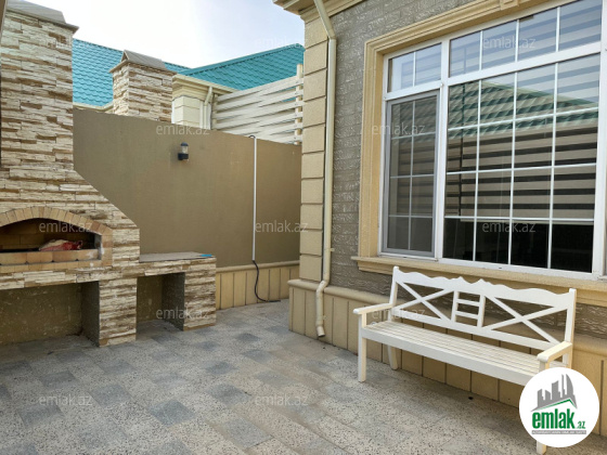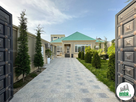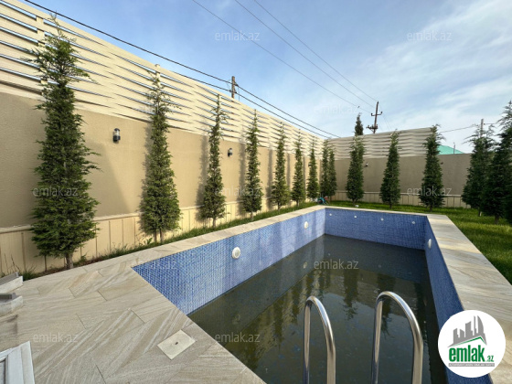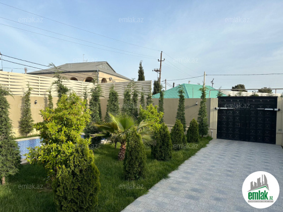 Xəzər rayonu, Mərdəkan qəsəbəsində, 7 sotun üzərində yerləşən 5 otaqlı həyət evi əşyaları ilə birgə satılır. Evin ümumi sahəsi – 280 kvadrat metr. 23 sanuzel. 3 split-kondisioner. Quraşdırılmış mətbəx mebeli və avadanlıqları. İstilik sistemi kombi. Bağın həyat yanı sahəsi çox baxımlı vəziyyətdədir, dekorativ çiçək və ağaclar mövcuddur. Həyətdə hovuz mövcuddur. Sənəd – Çıxarış.