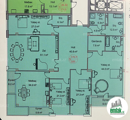 Satılır 5 otaqlı 320 m2 yeni tikili Gənclik m.