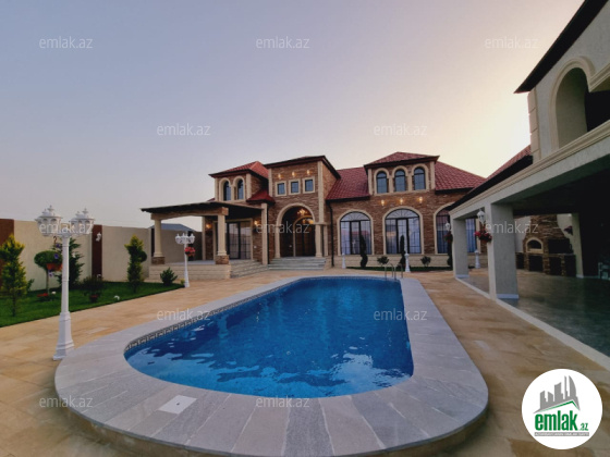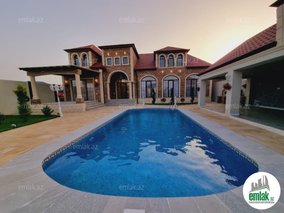 Xezer rayonu Merdekan qesebesi villalar olan mehellede '' Bravo '' yol terefde 8 sot torpaq sahesinde insa edilmis 1 mertebeli villa satilir.Umumi sahesi 250 kvm olan bu villanin 5 yataq otagi var. holl,1 zal , 4 yataq otag , metbexi , 4 sanuzeli movcuddur.Həyətində geniş filtirli hovuzu ,qonaq evi cambalkonlu , terras, qaraji , bisetkası, manqalni ,sohbetgah, iwiqlandirma sistemi , yay qiw metbexi , dekorativ ağacları, sanitar qovşağı distansiyonu qapisi var.Evin tikintisində keyfiyyətli tikinti materiallarından istifadə edilmiş və çox səliqəli inşa edilmişdir . Qazi , suyu , isiqi daimdir . Istilik sistemi kombidir . Senedleri qaydasindadir (KUPCA) .