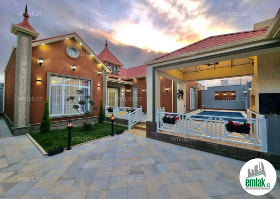 Həyətdə filterli hovuz, besetka,manqalxana, kombi otağı, sanitar qovşaqı, sensorlu gecə işıqları, dekorativ ağaclarıl, pultnan idarə olunan darvazası var. Suyu,qazı,işıqı və internet xətti daimidir...