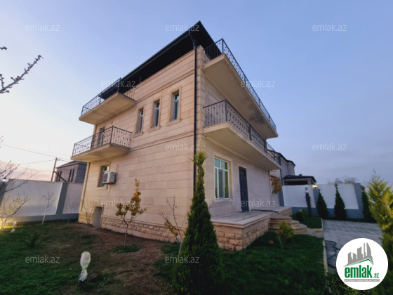 Merdekan qesebesinde modern uslubda tikilmiw umumi erazisi 6 sot olan, 3 mərtəbəli bağ evi satılır. Ümumi ərazisi 300 m2 olan, bu bağda 4 otaq var. 1-ci mərtəbədə:geniş qonaq otağı (studia), xoll və s.q. 2-ci mərtəbədə: 3 yataq otağı, s.q və geniş veranda. 3 –cü mərtəbədə: mansard və veranda yerləşir. Bağın bütün senedleri qaydasindadir ( kupça, çıxarış). Qaz,su,işıq təchizatı daimidir. Evin istilik sistemi kombidir. Bağın tikilməyində və təmirində yüksək keyfiyyətli materiallardan istifadə olub (monolit beton). Geniş və gözəl həyətində səliqəli qazon, dekorativ ağaclar ve besedka var. Həytin qapısı distancion idarə olunur və kamera sistemi quraşdırılıb.