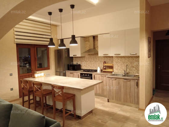 Ümumi sahəsi 75 kv metr olan qanuni 2 otaqlı mənzil satılır. Mənzilin qonaq otağının və mətbəxinin arası açılıb. Mənzil əla təmirlidir.