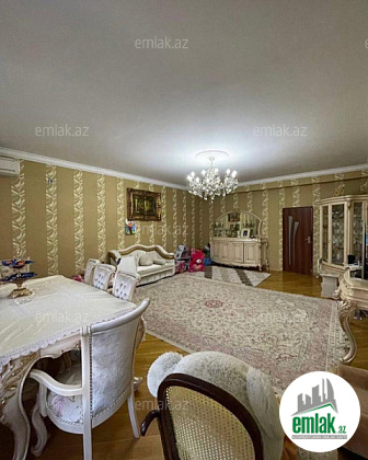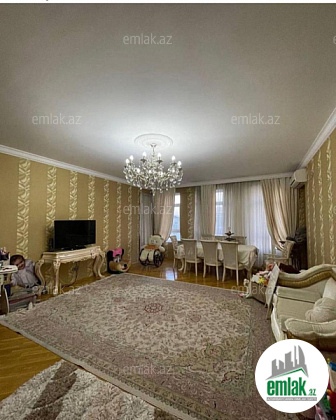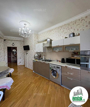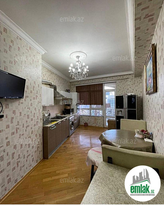 Ümumi 151 kv.m. 3 otaqli 2 sanitar qovşagi istilik kombi,qaz su işiq daimidir,döşəmə parket,qurulmuş mətbəx və dolab mebeli.