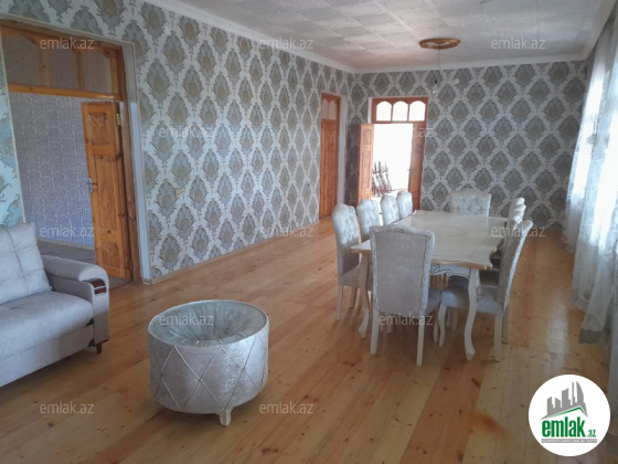 2.4 sotda tikilib genis heyeti var arxasindada heyeti var dam yeri mey ve agaclarida var ev gozel deyerinden ucuzdur