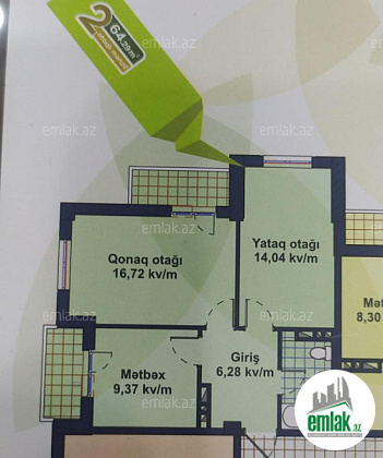 Bina Musfiq qesebesinde Cennet park yasayis kompleksinde yerlesir.bina hazirdir.ev 64 kv 2 otagdan ibaretdir ayri ayri otaqlardir.ev hazir kreditdedir 101 ayi qalib ayda 432 azn kredit olmaq sertile ile satilir