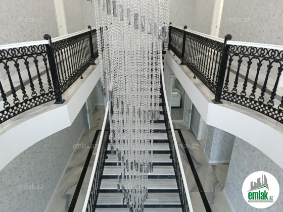 Mərdəkanda prestij yerde yola yaxin elit mehellede mohteshem villa 17 sot torpaq sahəsində ümumi sahəsi 550 kv olan klassik üslubda inşa edilmiş möhtəşəm bağ evi satılır.Evin tikintisində keyfiyyətli materialladan istifadə olunmuşdur.Evin 1ci mərtəbəsində mətbəx, geniş zal, 1sanitar qovşağı, 1yataq otağı, çamaşırxana, bağlı baseyn və sauna mövcuddur.2 ci mərtəbədə isə 4 yataq otağı var və hər birinin daxilində s/q və qarderob var.Həyətində baglı söhbətgah və mətbəx,dekorativ ağaclar, qaraj,geniş filtrli hovuz,şəlalə və manqalxanası var.Qaz,su və işıq daimidir.Ev 4 mövsüm yaşamaq üçün elverişlidir.Sənədlər qaydasındadır. Çıxarış(kupça)var.