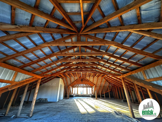 Ev: 3 mərtəbə + mansard (hər mərtəbə 360 m², mansard – 240 m²)