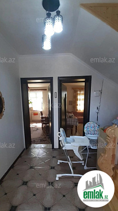 Ev 2 mərtəbədən 4 otaqdan ibarətdir.yeni təmirlidir.her mərtəbədə sanuzel var.hamam isti poldur.su,qaz,işıq daimidir.internet xətti var.1masinliq heyəti var.məhəllə sakinlərə məxsus bağlı məbləğdir.istilik sistemi kombid...