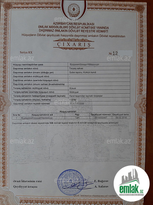 Torpaq satılır çıxarışı var 15 sotdur.( Yaşayış məntəqələrinin torpaqları)