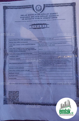Əsas yola baxan iki qapısı olan, dörd tərəfi hasarla əhatələnmiş geniş həyət. Həyətin daxilində 3 mərtəbəli yarımtikili ev mövcuddur. Bundan əlavə, tam hazır vəziyyətdə olan mühafizə (oxrana) evi də yerləşir....