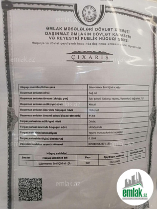 5 sot həyət. Küçəyə 2 tərəfdən çıxışı var.kupça ...