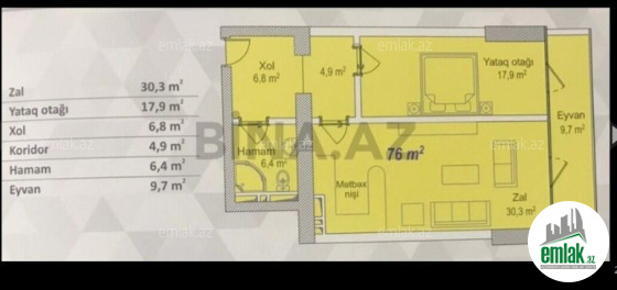 Sahə76 m2