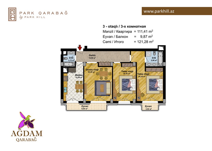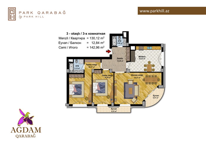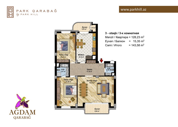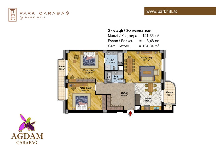 3 otaq – 134.84 kv / 142.96 kv.m