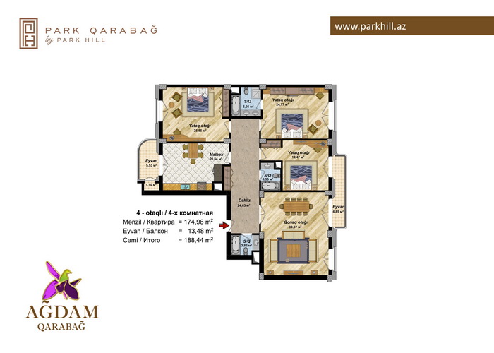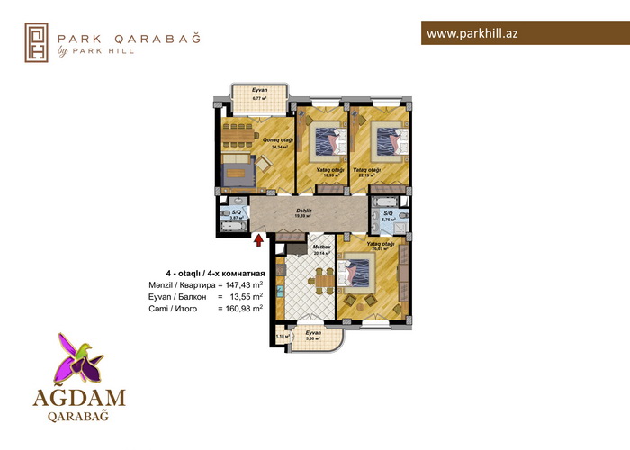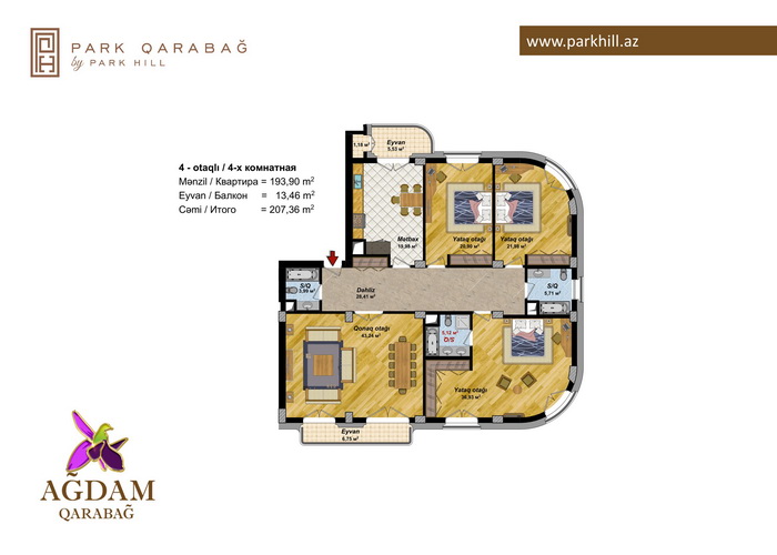 4 otaq – 160.98 kv.m /188.4 kv.m / 207.36 kv.m