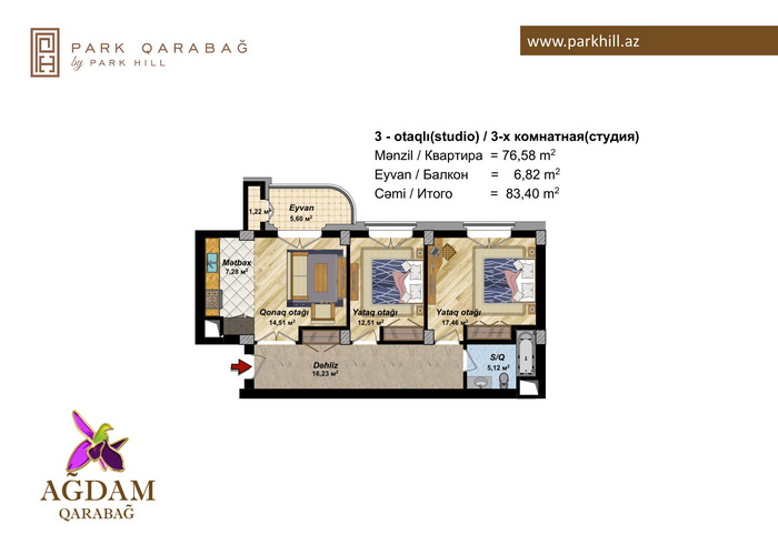 2 otaq - 83.40 kv.m