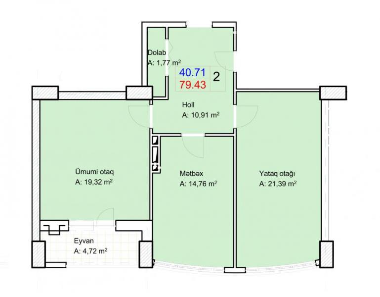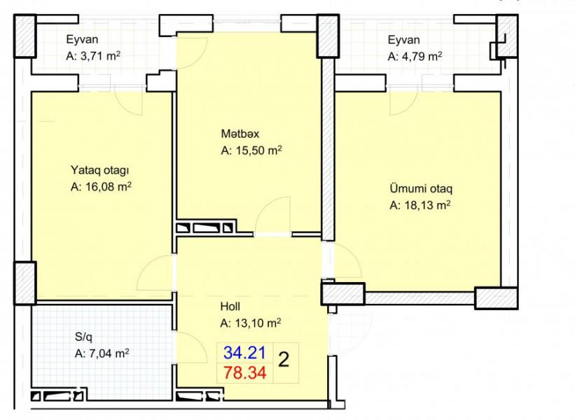 1 kvm qiyməti: nəğd 1700 azn / 3 illik kreditlə 1800 azn