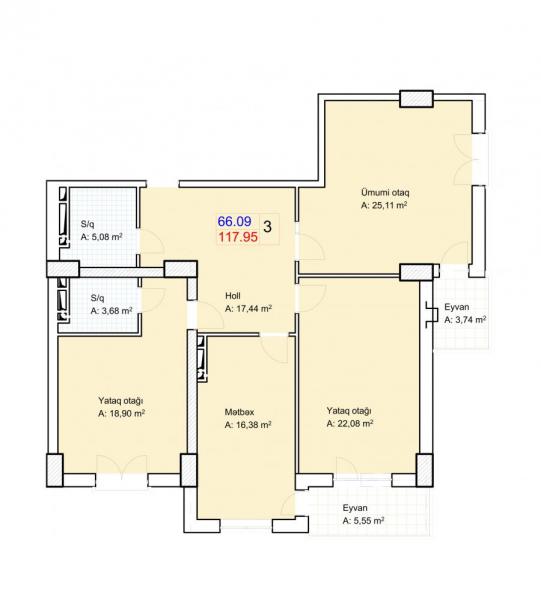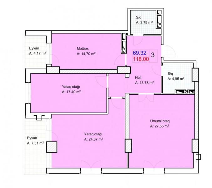 Цена 1 квм: 1700 azn / кредит на 3 года 1800 azn