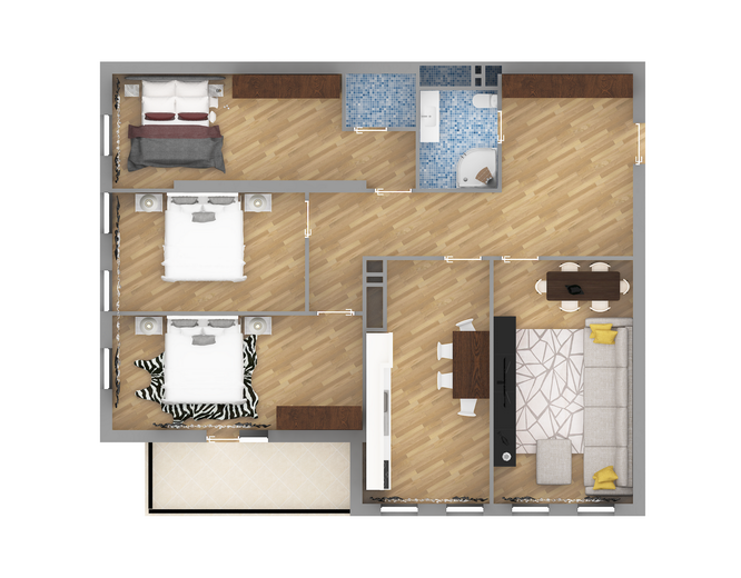 1 otaqlı mənzillər – 56.29 m2