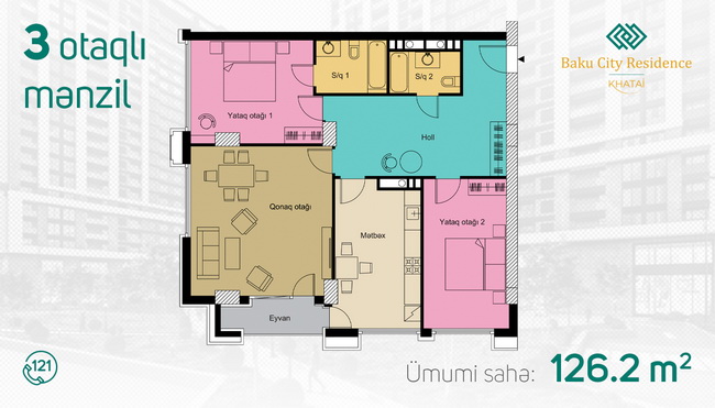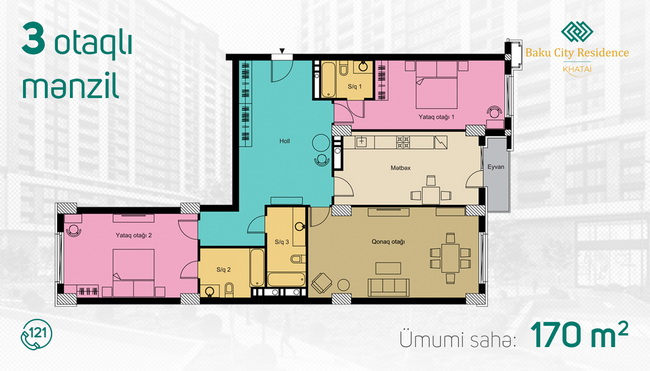 3 otaq - 123.6m² - 170 m²