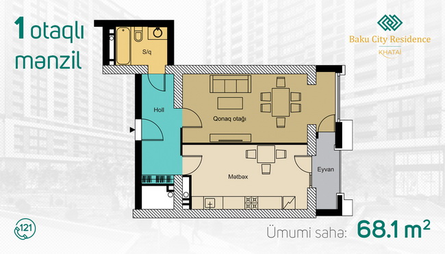1 otaq - 65.1m² - 68.3m²