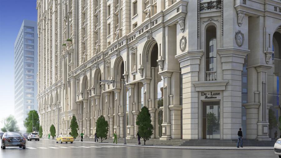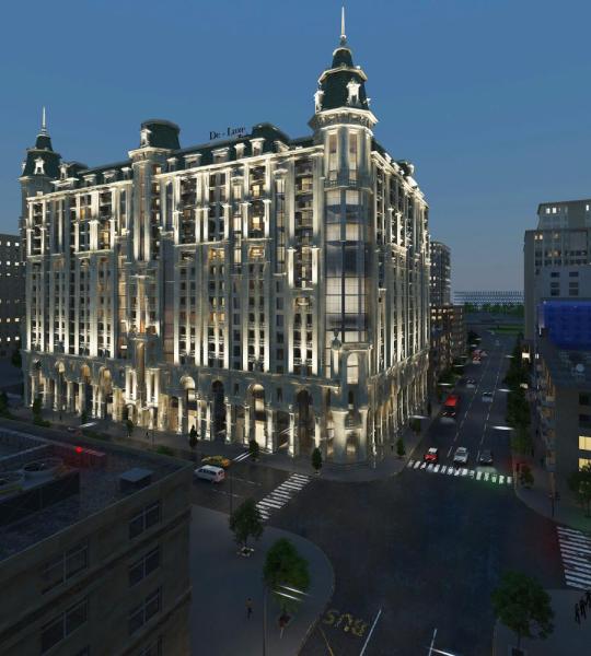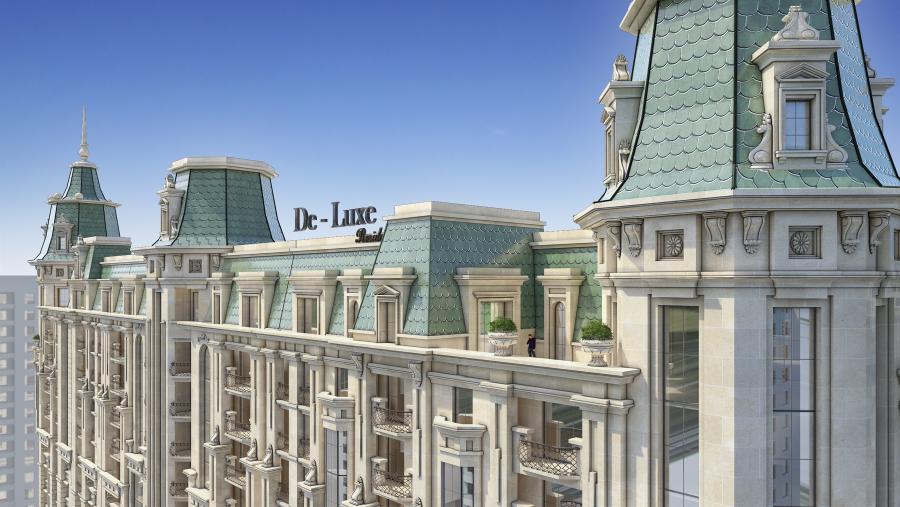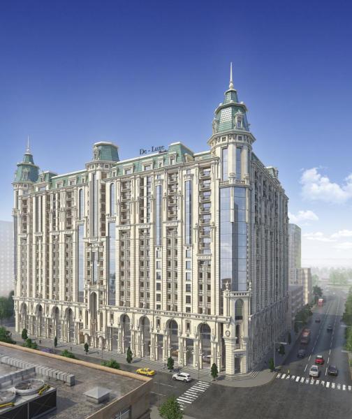 Yeni tikilinin ümumi təsviri Deluxe Palace yaşayış kompleksinin layihəsi məşhur memarlar və dizaynerlər tərəfindən işlənmişdir və onlar bu yeni tikili binanın şəhərin yaraşığı olması üçün əllərindən gələni etmişlər. Sakinlərin maksimum rahatlığı üçün bina mərkəzi istilik və hava dəyişmə sistemləri ilə təchiz olunmuşdur. Bəzək üçün yalnız keyfiyyətli təbii materialların istifadə olunduğu otaqlarda dekorasiya işlərinə xüsusi diqqət verilmışdir.